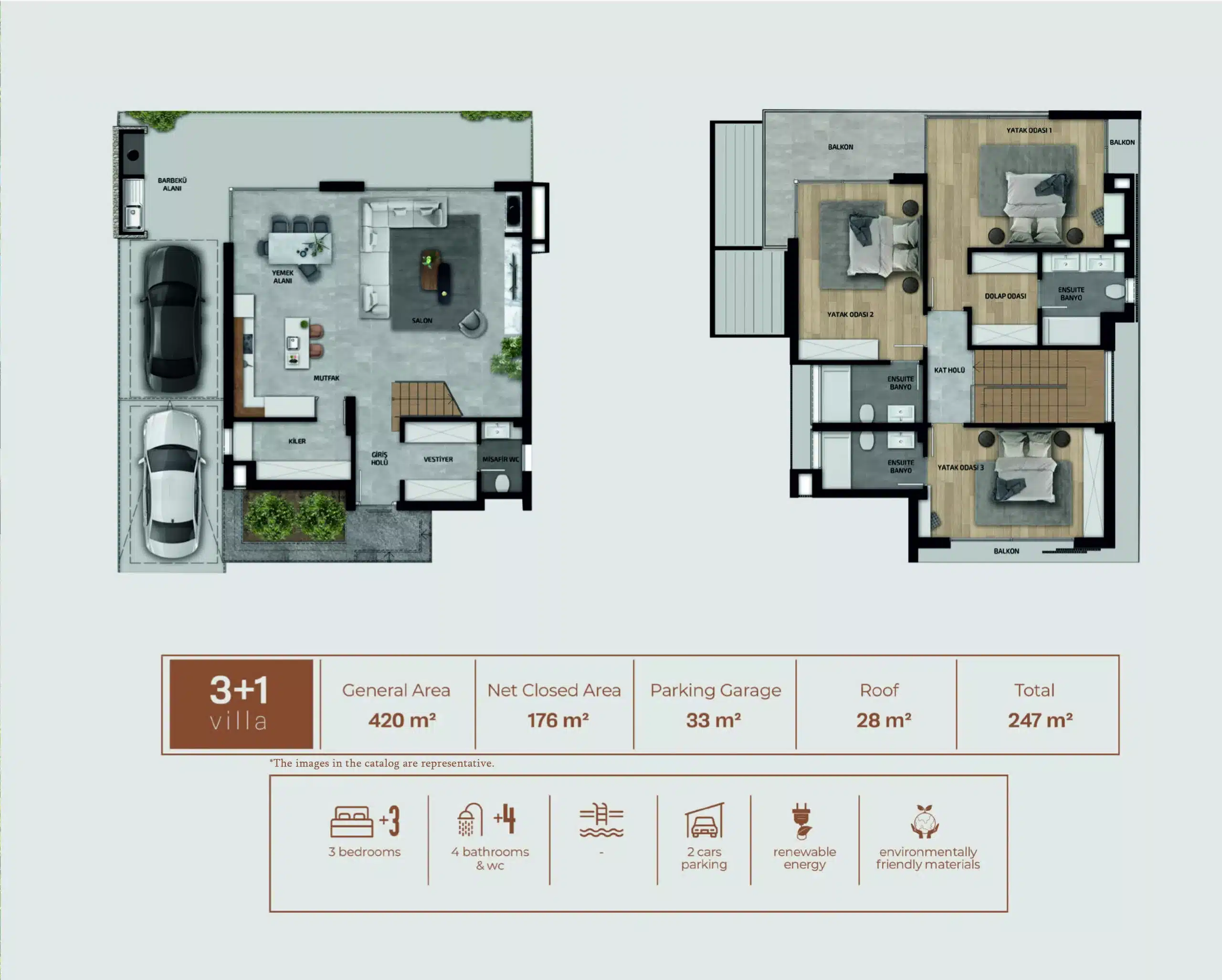 Die Villa bietet 247 m² Gesamtfläche, 176 m² Wohnfläche und eine Terrasse von 28 m². Preis: £340.000. Übergabe: Oktober 2025.