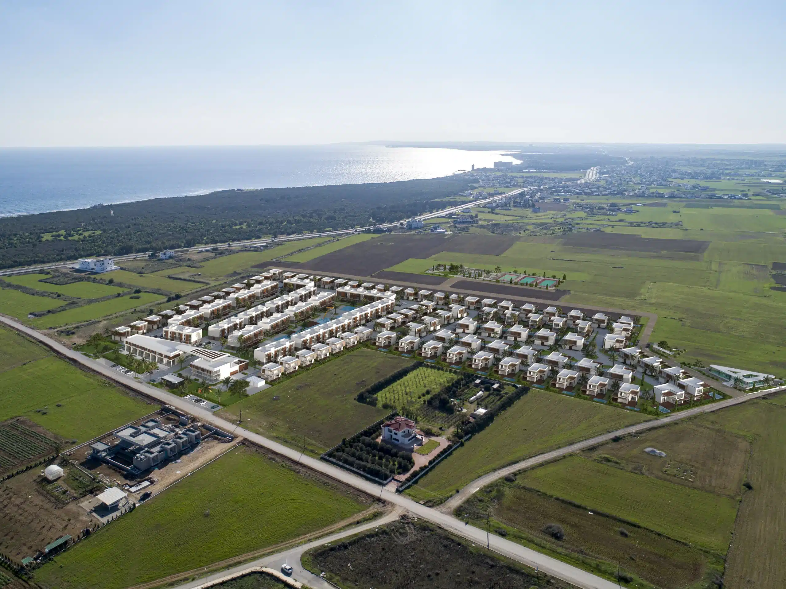 Die Villa liegt nur wenige Autominuten vom feinsandigen Long Beach entfernt. Die Infrastruktur ist hervorragend – mit Supermärkten, Restaurants, Cafés, Apotheken und Schulen in unmittelbarer Nähe. Der internationale Flughafen Ercan ist nur rund 50 Minuten entfernt, der Flughafen Larnaca auf der Südseite der Insel ist in etwa 1 Stunde erreichbar.