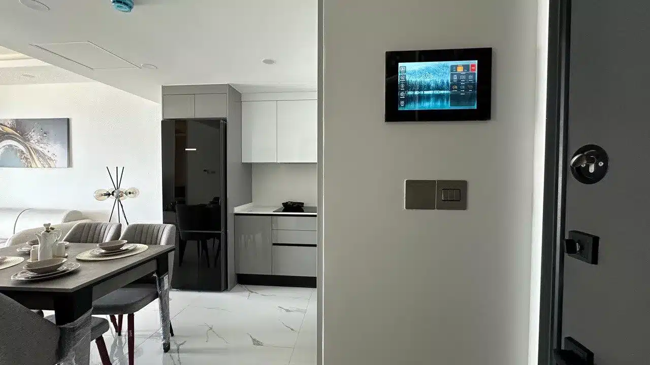 steuert Klima, Licht und Sicherheit. Die zentrale Warmwasserversorgung verzichtet auf Boiler – effizient und komfortabel.